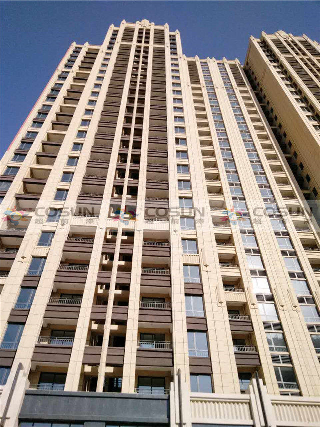 河南鄭州新鄭龍湖悅府海堂工地面積30萬平方,為了追求高端住宅的需要,能從視覺上彰顯整個建筑的高雅與莊重之美,選擇了真石漆、巖片漆做為外墻專用漆,甲方在層層的考察篩選后,超前涂料順利入圍。