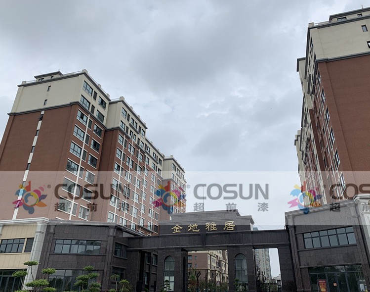 蘭考金地雅居面積6萬平方,在市場激烈的競爭之下,超前涂料以優質的原材料、專業的技術團隊、嚴謹的生產流程及優質的售后服務贏得到蘭考億元實業有限公司的認可,蘭考億元決定外墻用漆選用超前真石漆。