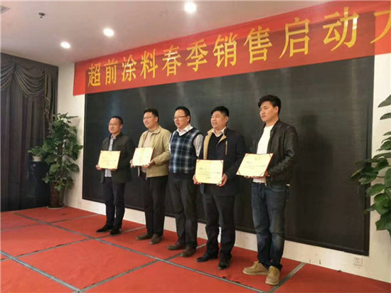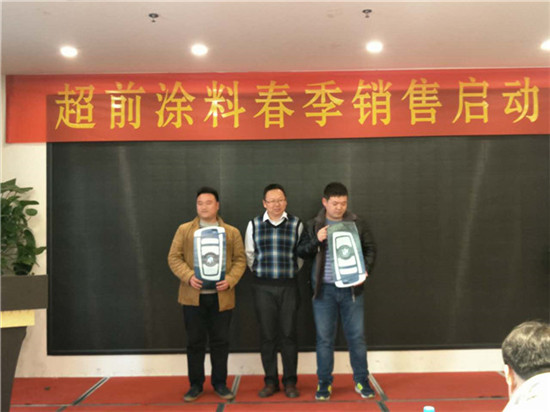 在過去的一年里,超前涂料里的每一位業務家人,就像一只只雄鷹,搏擊風雨,翱翔蒼穹,創造佳績,跨越了一座座難以逾越的巔峰,在時間的長河里留下一個個美麗的剪影。在公司閻總的關心和領導下,在各部門的大力支持下,通過全體業務家人的共同努力,公司業務規模獲得了輝煌的發展。今天,在這啟動大會上閻運鋒閻總親自給四位優秀業務家人送出了四輛寶馬作為獎勵。